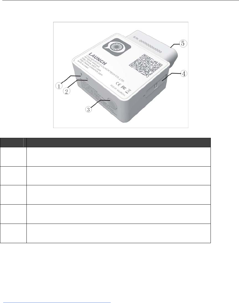 5 16 pin OBD II connector: To connect to vehicle’s OBD II diagnostic socket.