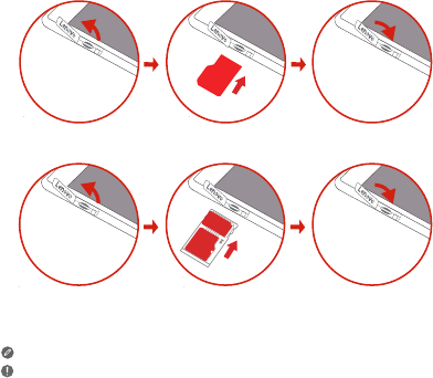Step 2. Insert the *Nano-SIM and microSD cards as shown.