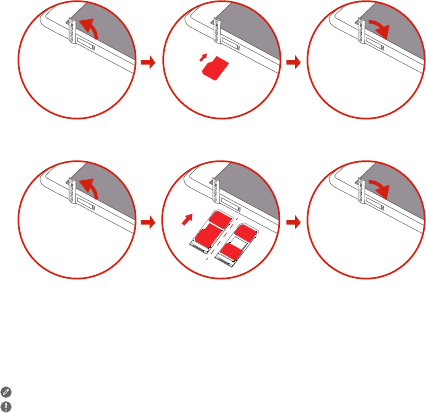 Step 2. Insert the *Nano-SIM and microSD cards as shown.