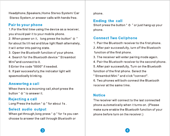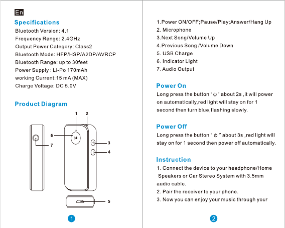 MPOW TECHNOLOGY BH044C Bluetooth music receiver User Manual