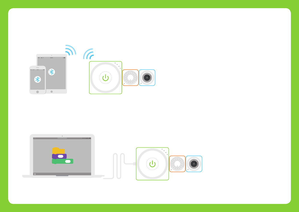 which allows the wireless communication between blocks and mobile / tablet / computer, as well as wireless