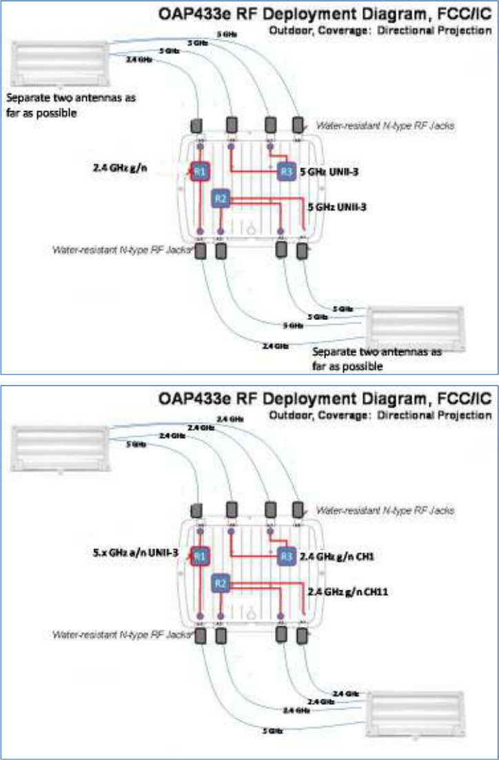 Inside antennas must be positioned to observe minimum separation of 51 cm. (~