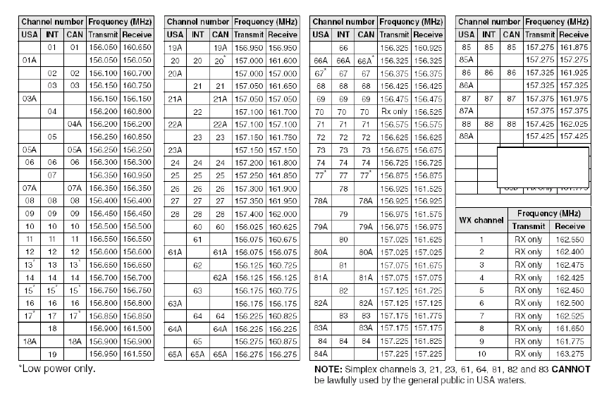 (Nautico) WEATHER (WX) RECEIVER FREQUENCY CHART (MHz)