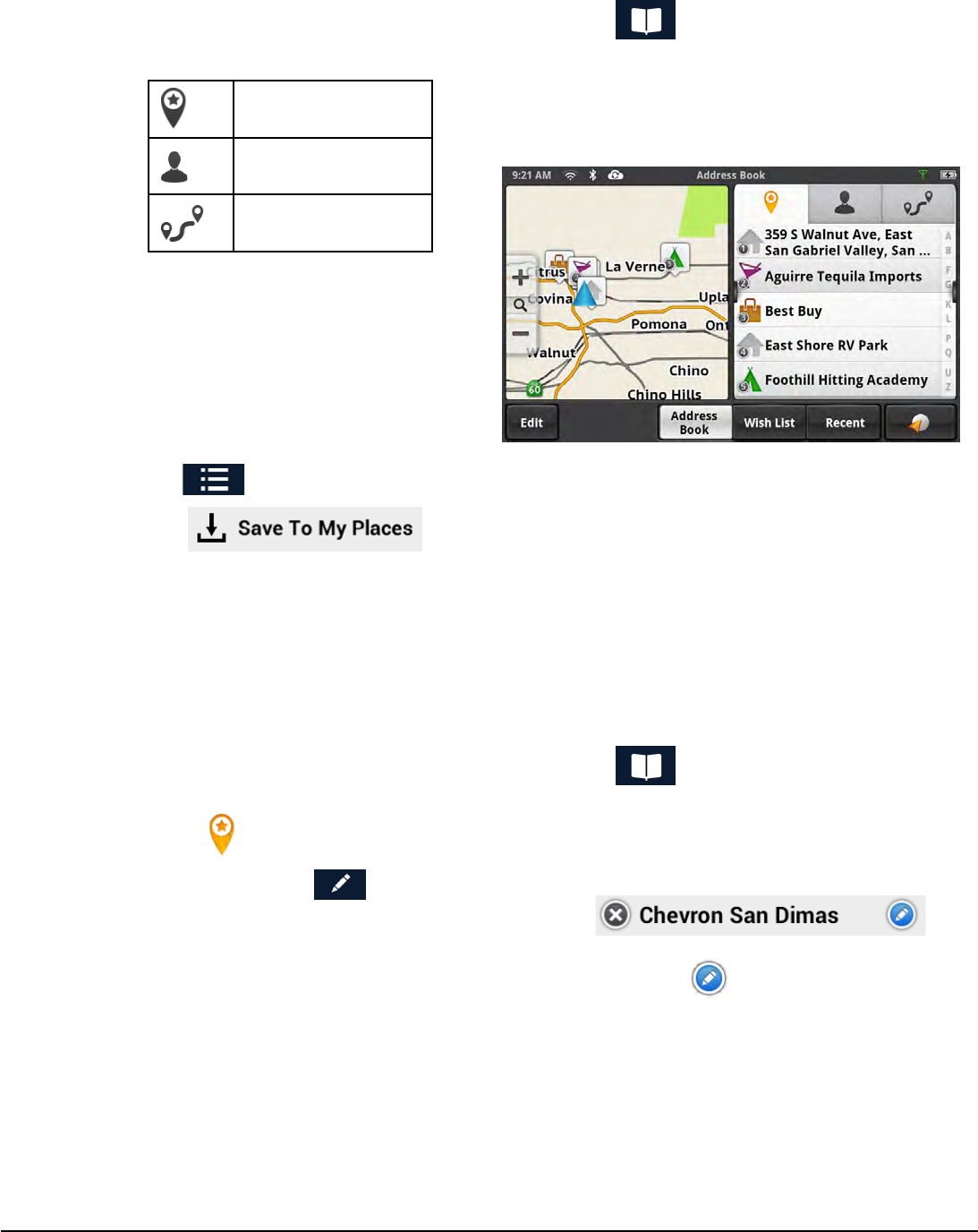 Tap to access a list of POI (Points of Interest) types. Whan a POI type is checked, it will appear