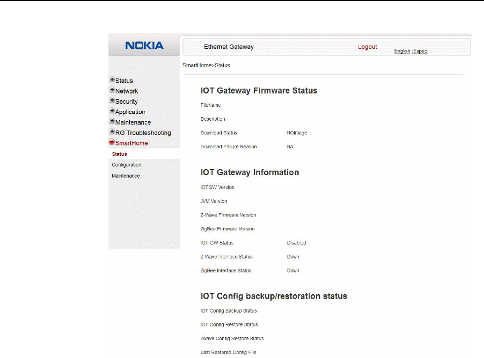 Select Smart Home>Status from the left menu in the Ethernet Gateway window.