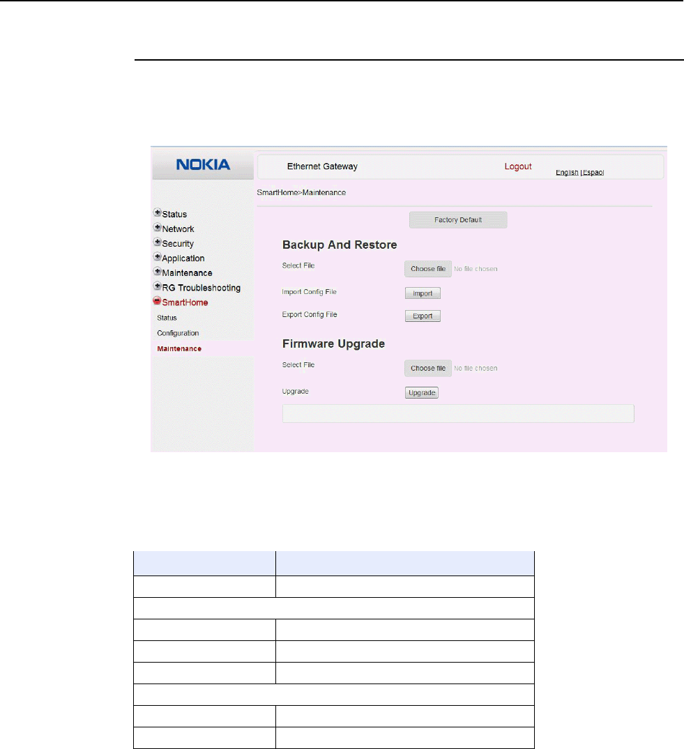 Select Smart Home>Maintenance from the left menu in the Ethernet Gateway window.