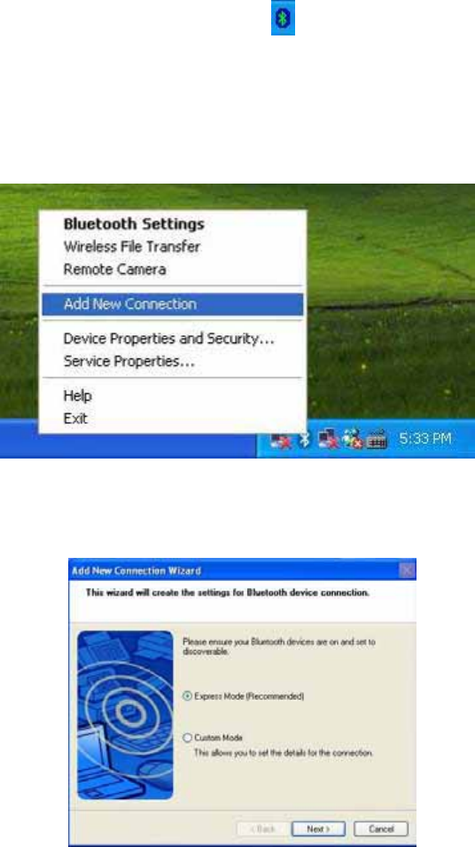 1. Right click on the BT icon and choose “Explore My Bluetooth Places”