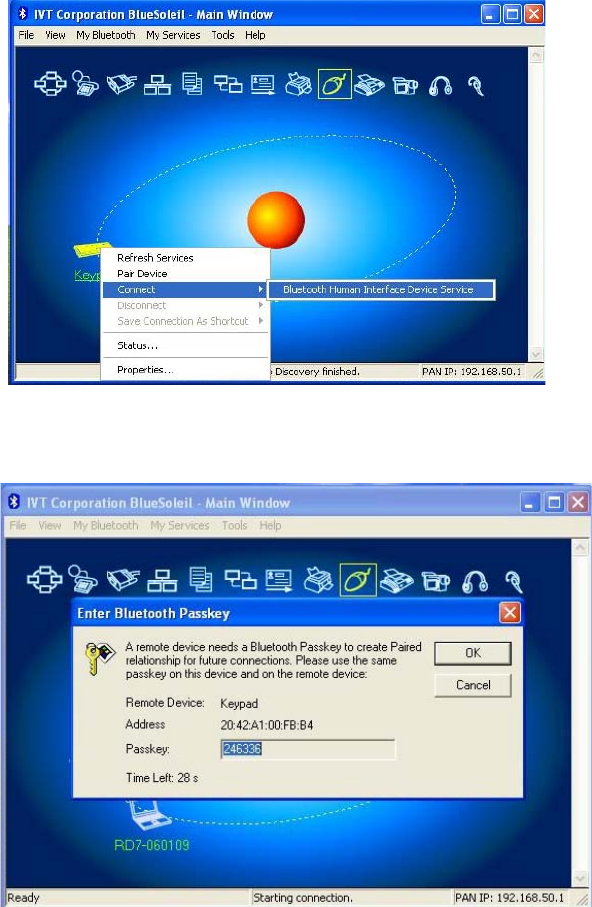 choose “”Connect” → ” Bluetooth Human Interface Device Service”