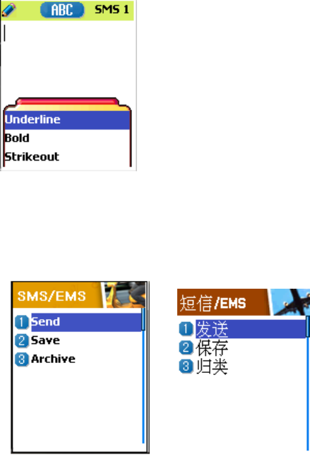 •Send Message (Menu to send SMS / EMS / MMS)