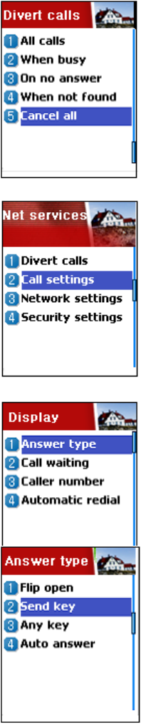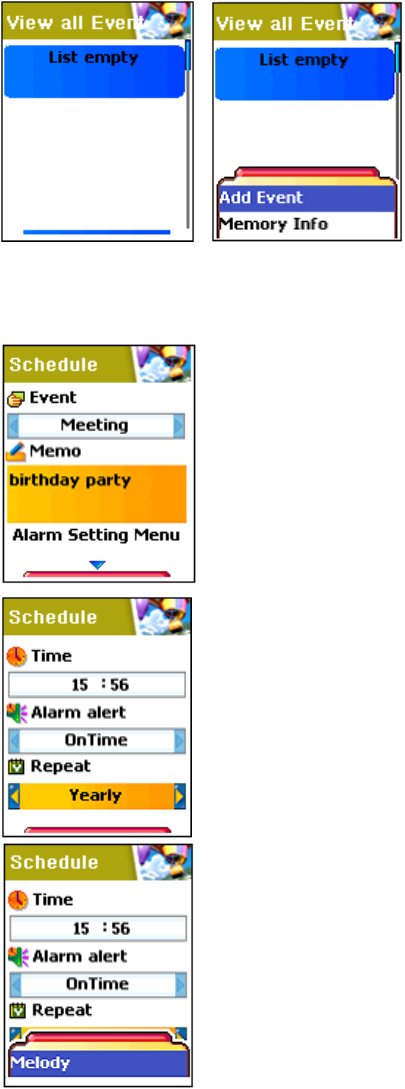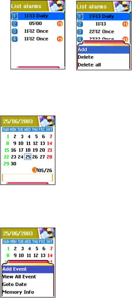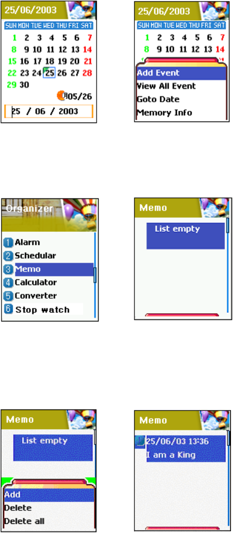 Window when Menu Key pressed in the each number