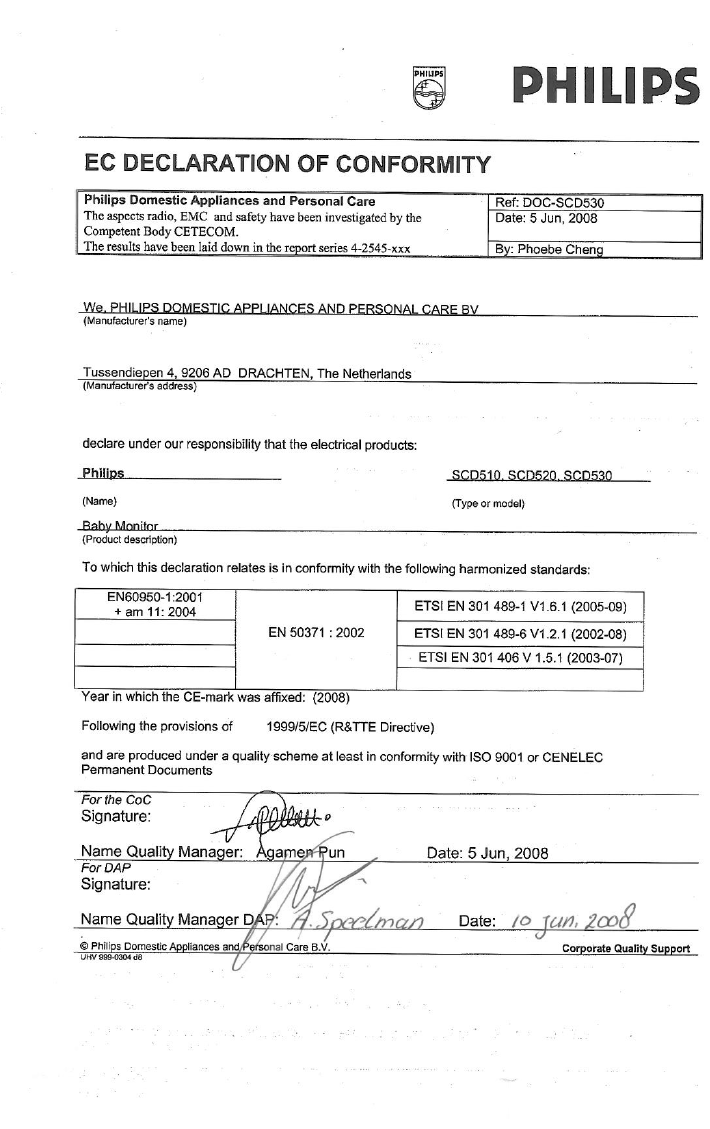Philips Consumer Lifestyle SCD520 UPCS Baby Monitor (Baby Unit) User Manual A5
