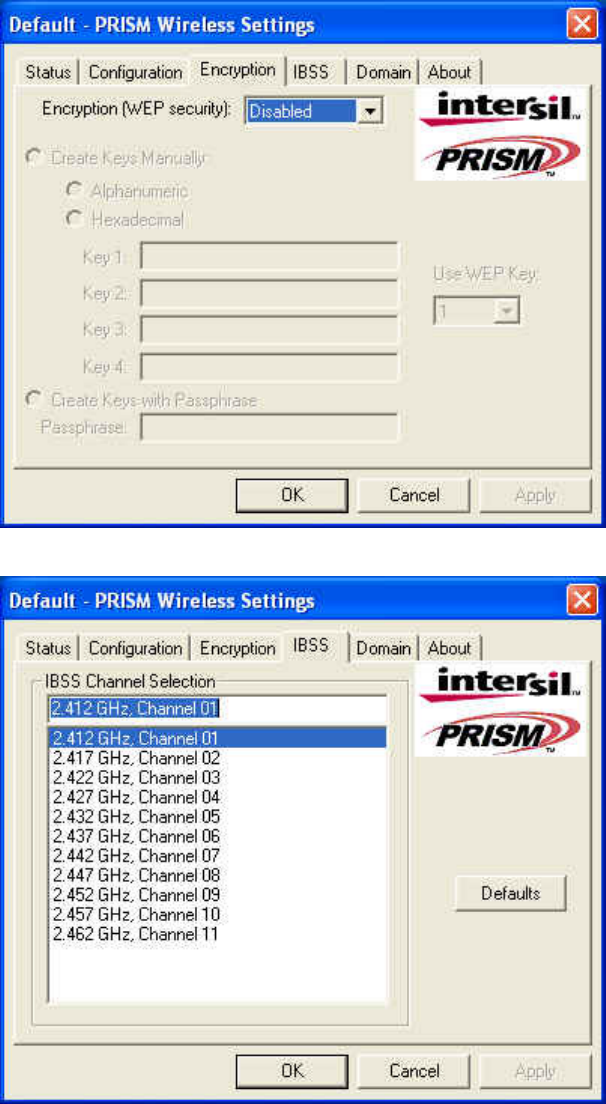 The IBSS page allows you to choose the channel The IBSS page allows you to choose the channel used by an Ad-Hoc (peer-to-peer) network.