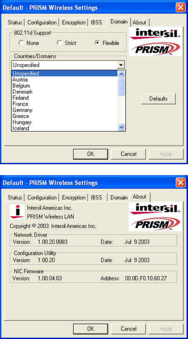 The Domain page allows you to set the 802.11d Support and Countries/Domains if Q802MIG. Consult your