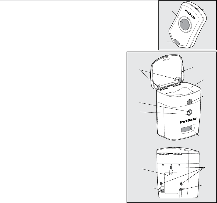 :The Treat Dispenser, Handheld Remote, and Pee Pad Transmitter should NOT be submerged in water