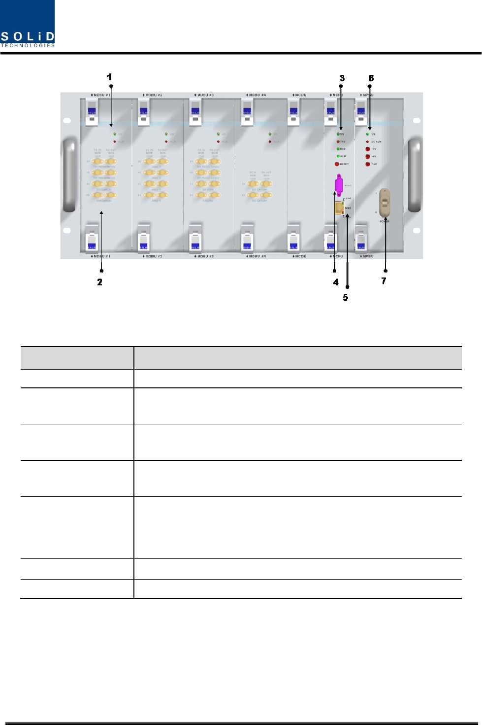 1. MDBU LED LED to show whether MDBU is installed and gets faulty