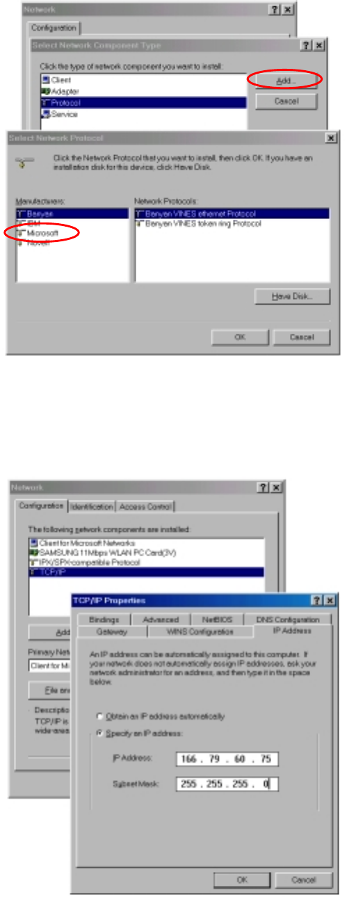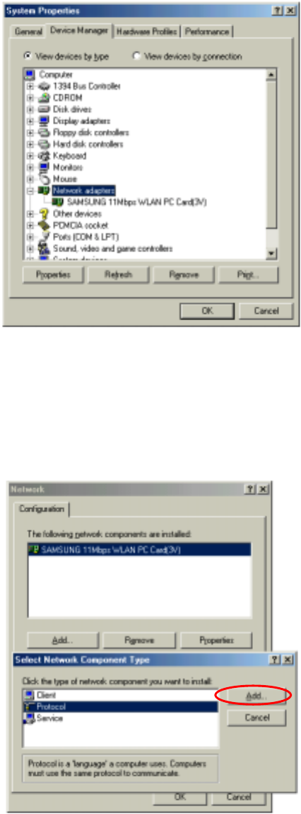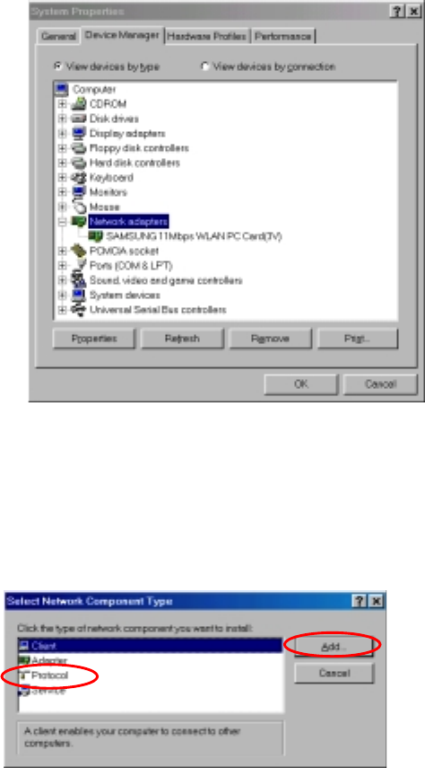 In case of Windows 98, please click Start – Settings – Control Panel – Network(double