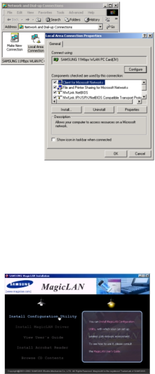 Q. I want to use Samsung client utility in the Windows XP. But, we can’t set up correctly.