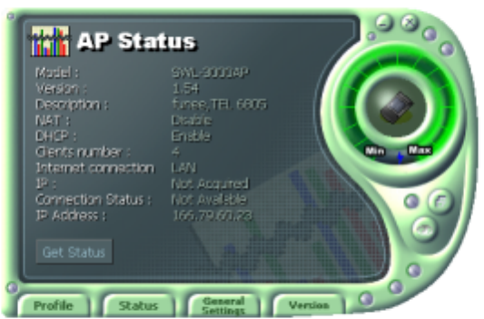 It shows the current state of AP. (You can see the IP address changed by the Get Status