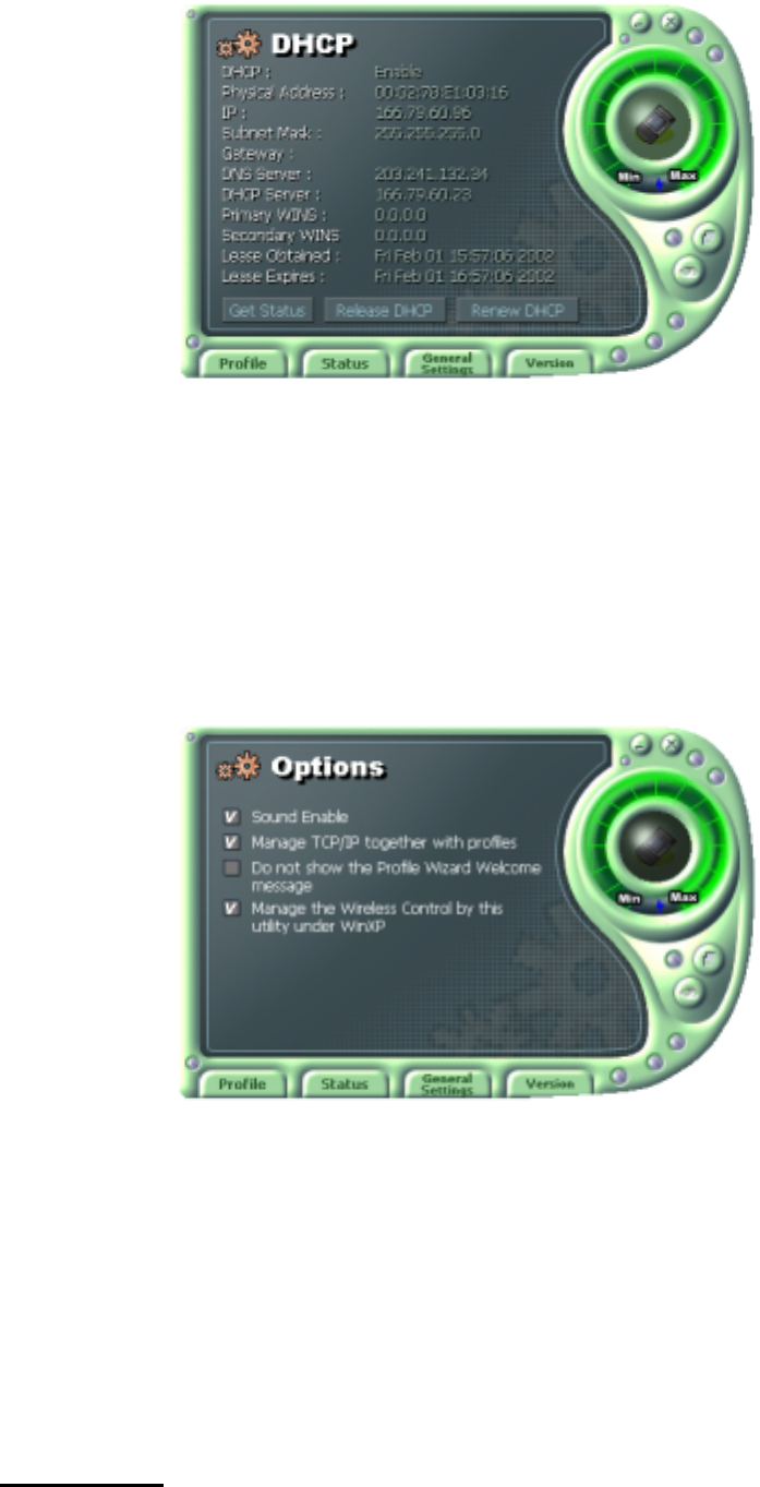 - The Get Status button shows the updated information obtained from the DHCP server.