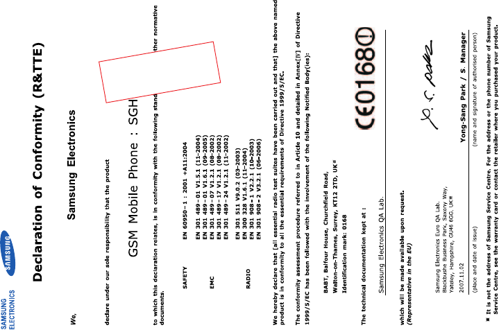 Samsung Electronics Co SGHI900 Cellular/PCS GSM/EDGE Phone with Bluetooth User Manual SGH i900