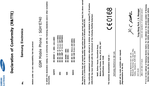 Samsung Electronics Co Ltd PCS GSM/ EDGE Phone with Bluetooth Users Manual