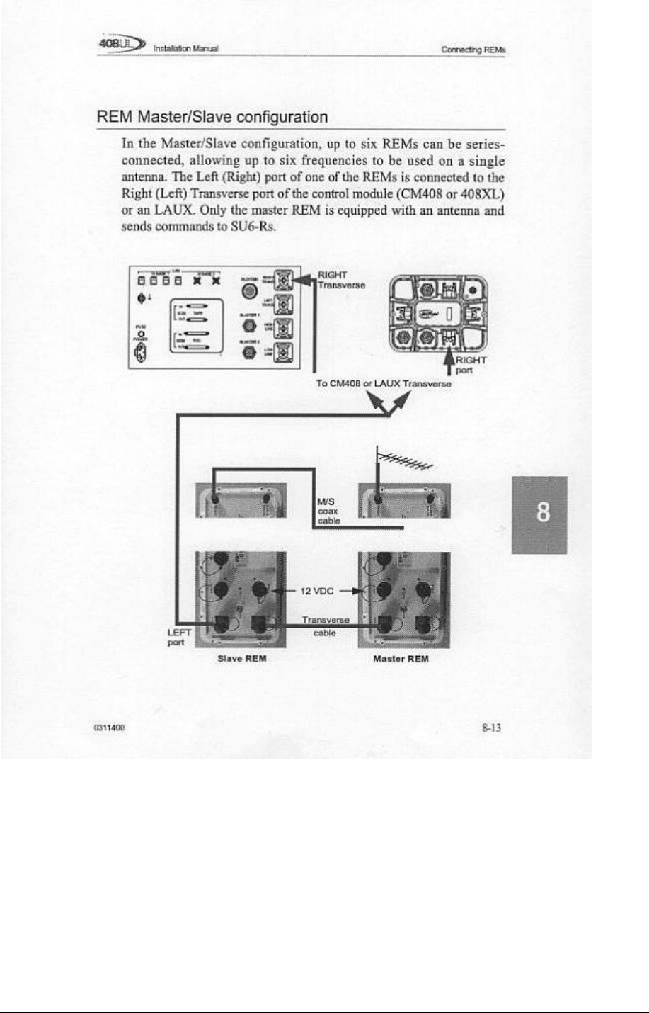 The REM connects to the Left or Right Transverse connector of an LAUX, or a