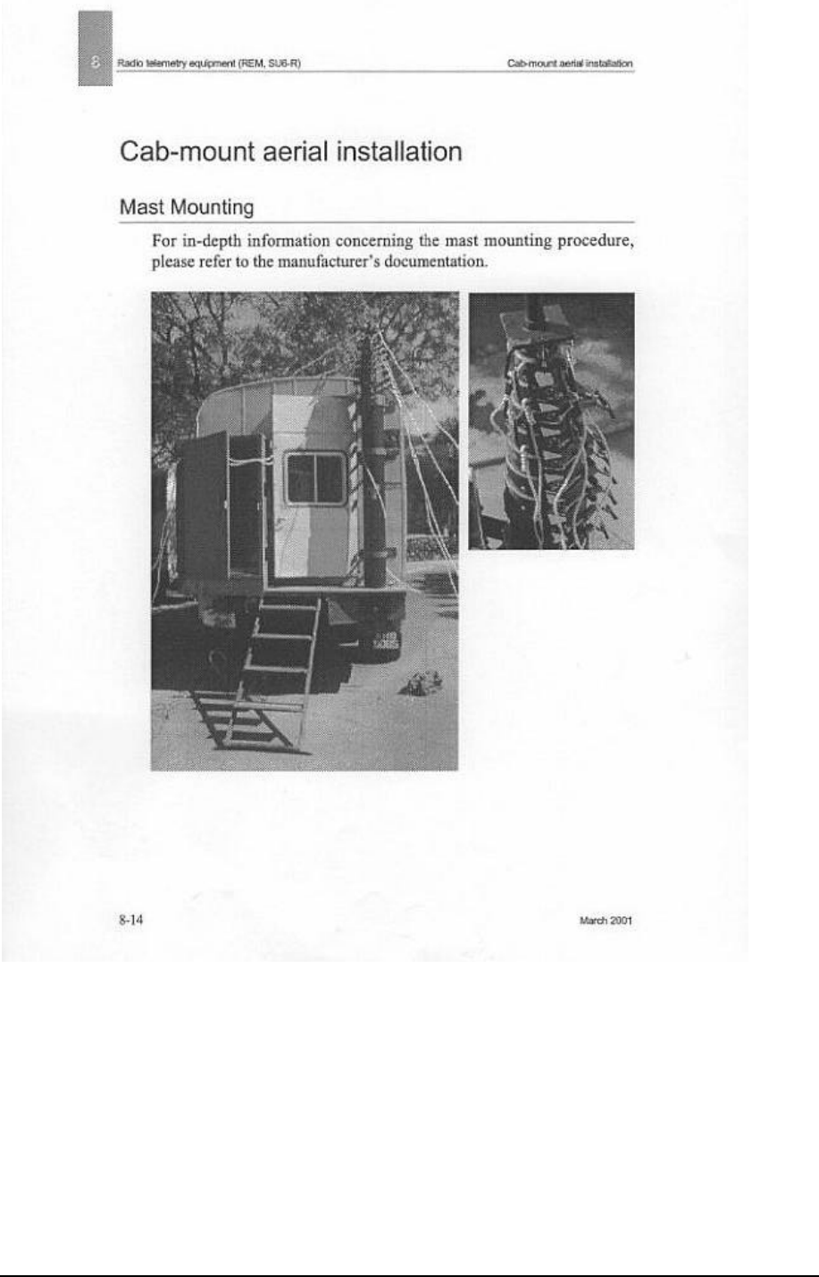 Radio telemetry equipment (REM, SU6-R) Cab-mount aerial installation