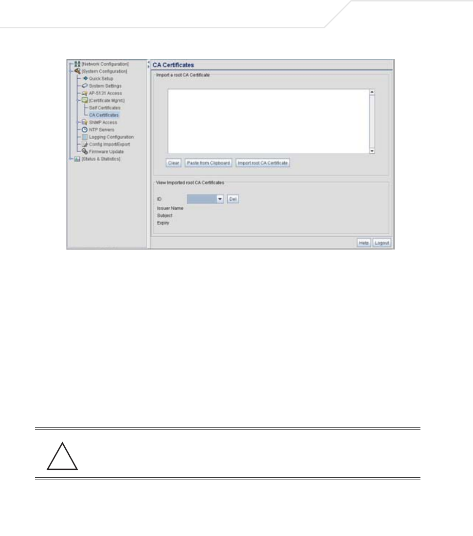 CAUTION Ensure the CA Certificate is loaded before the Self Certificate, or risk