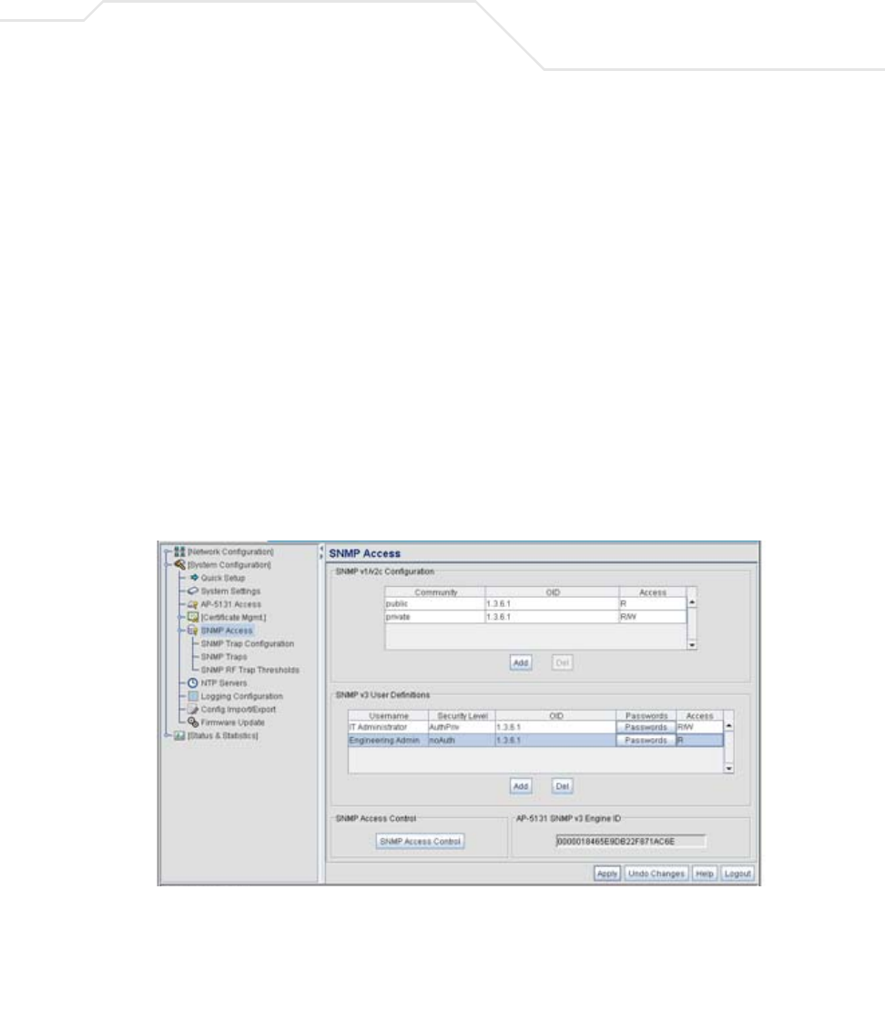 6. Click Apply to save any changes to the SNMP Access screen. Navigating away from the