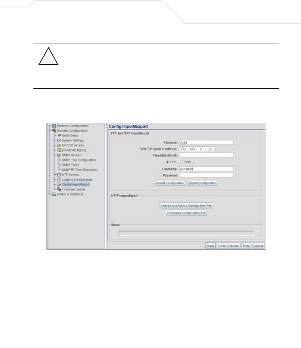 screen without clicking the Apply button results in all changes to the screen being lost.