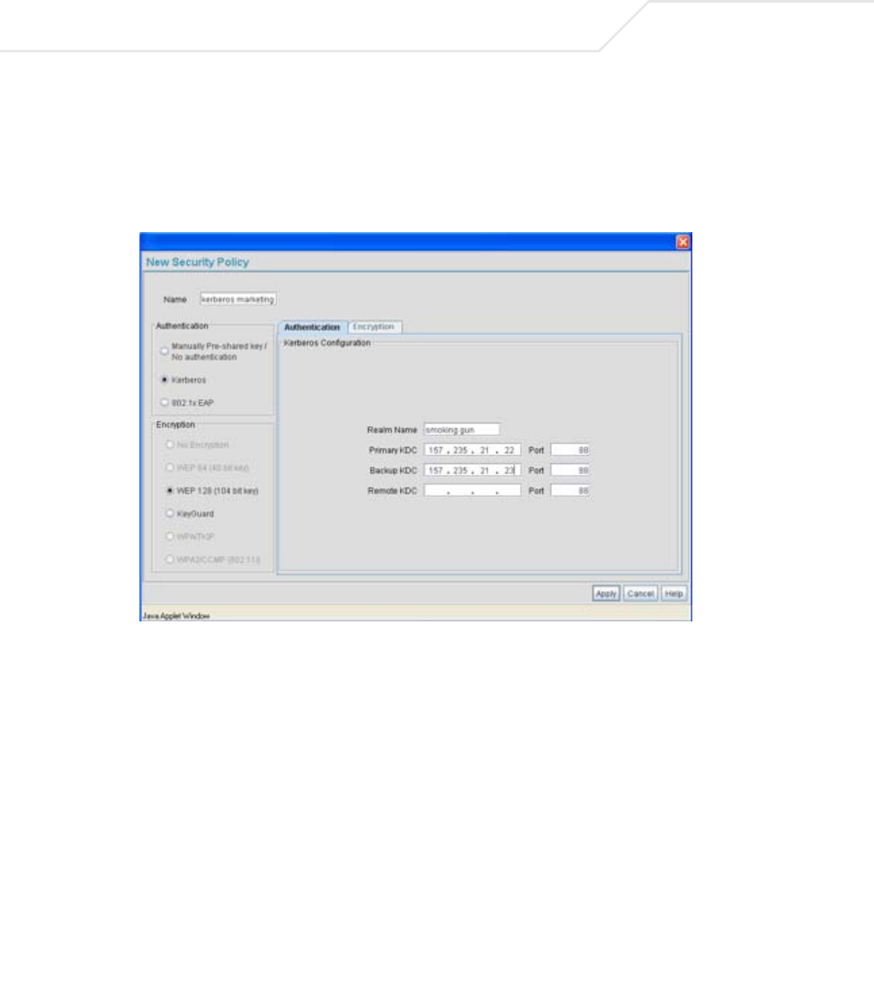 assure privacy and data integrity. Kerberos can only be used on the access point with Symbol clients.