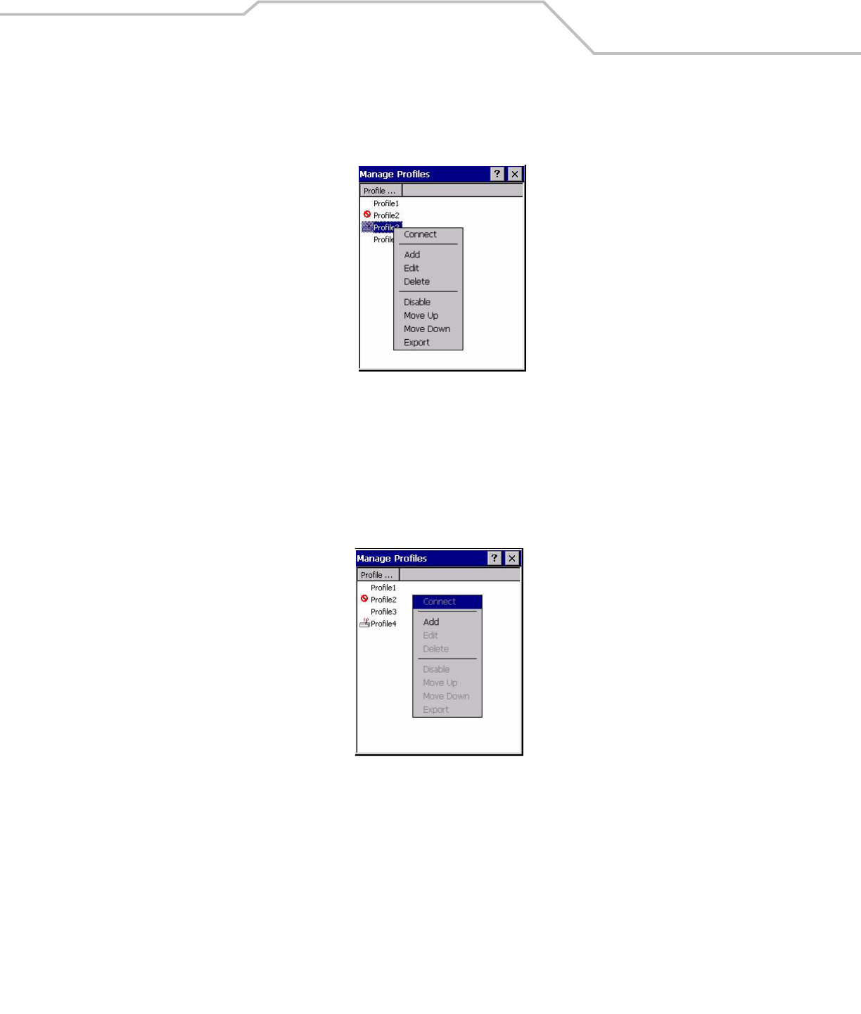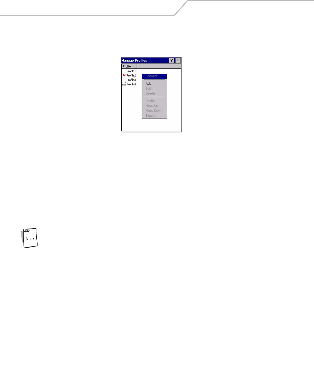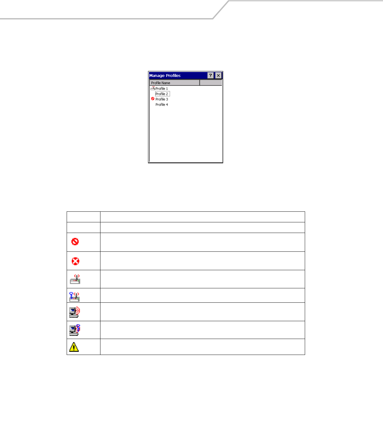 Profile Status Icon The profile status icon in the dialog (shown next to the profile name) would show one of three states.