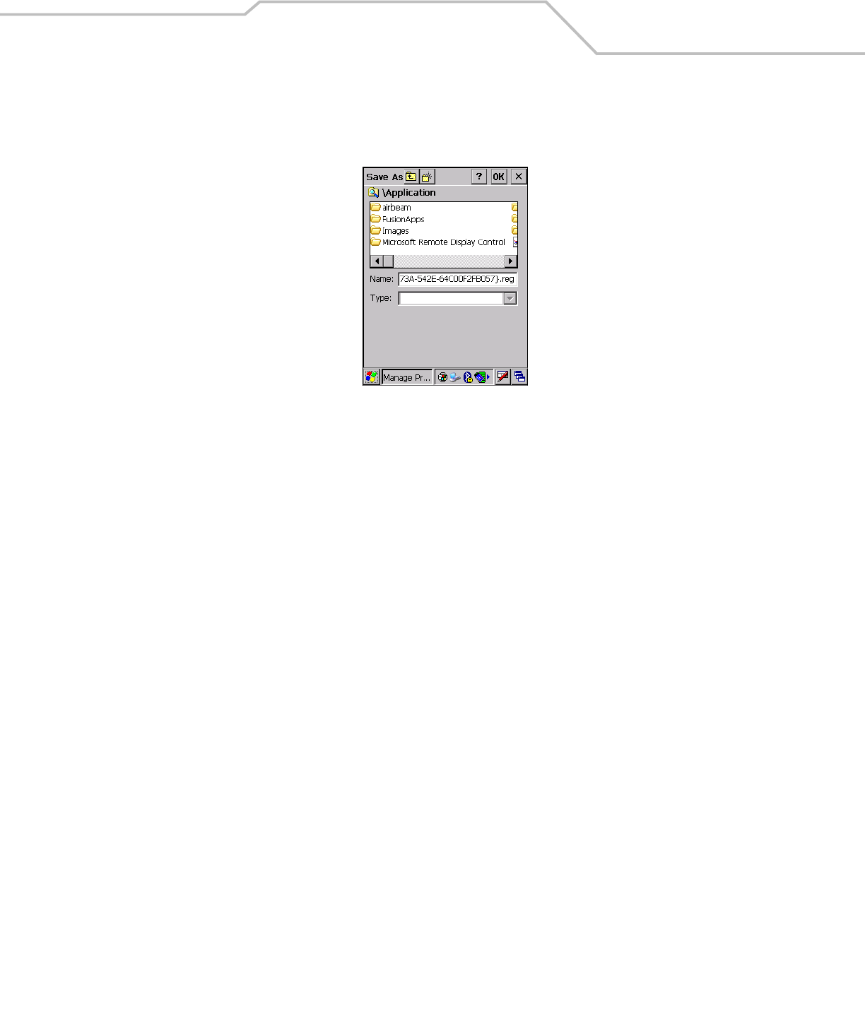 functions prompts the user for a filename that is used as the registry file. The “save” dialog box defaults to the application folder,