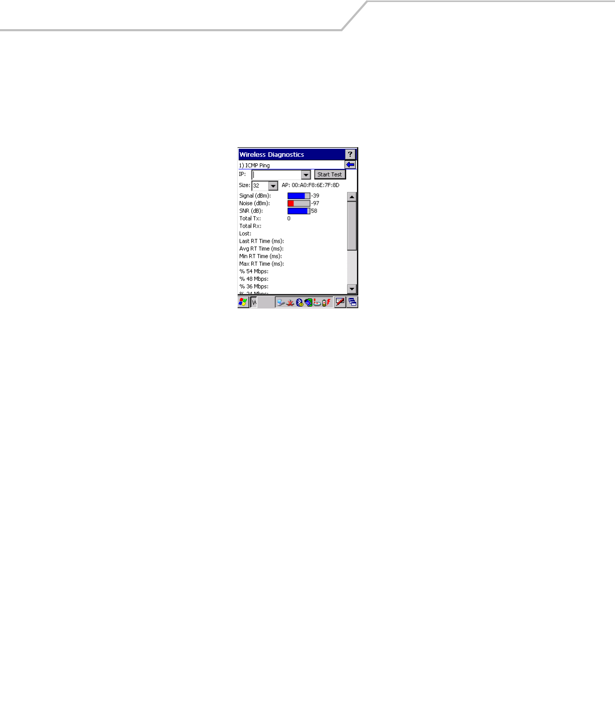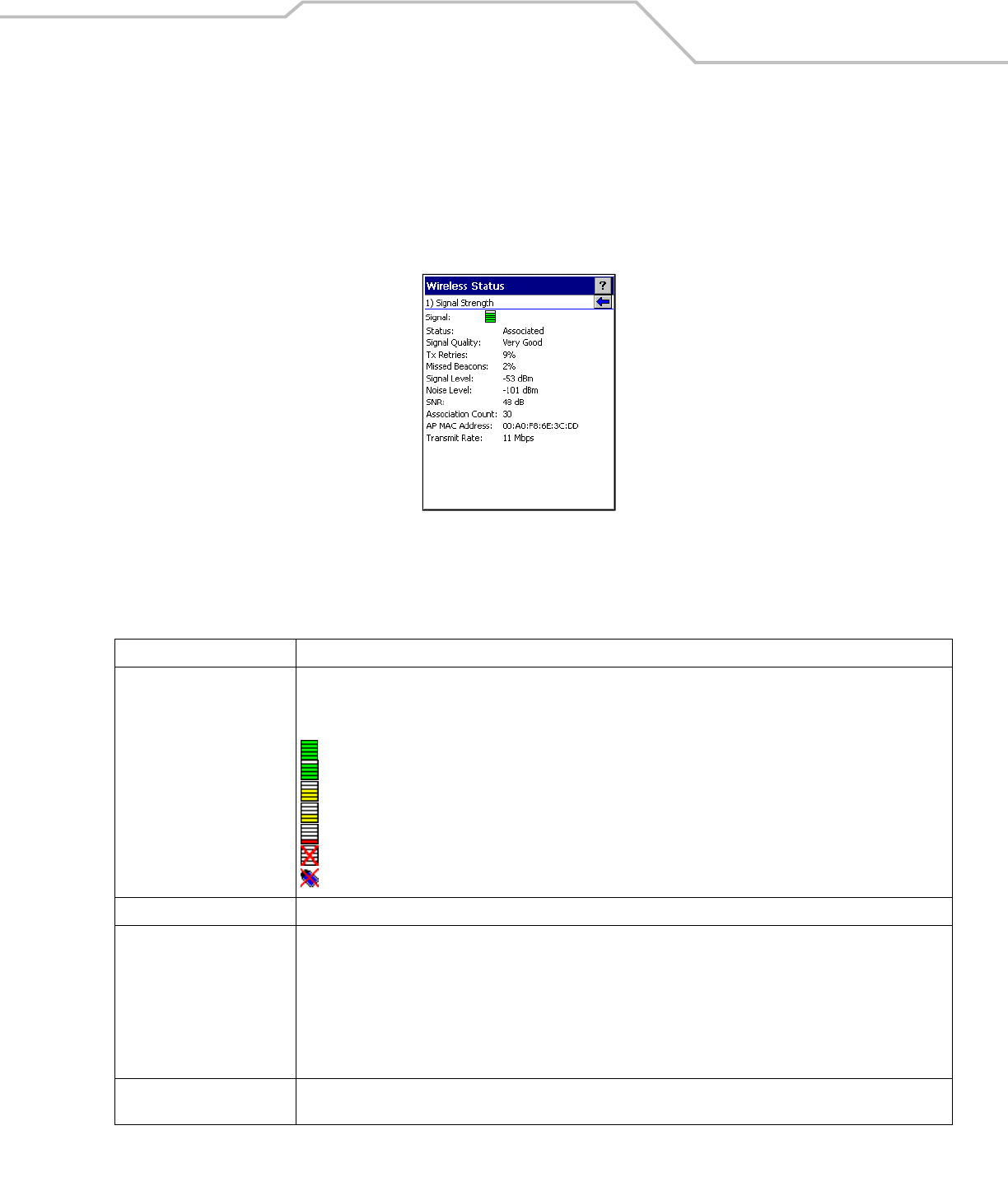 • Signal Strength - Displays the signal strength of the signal from the AP.