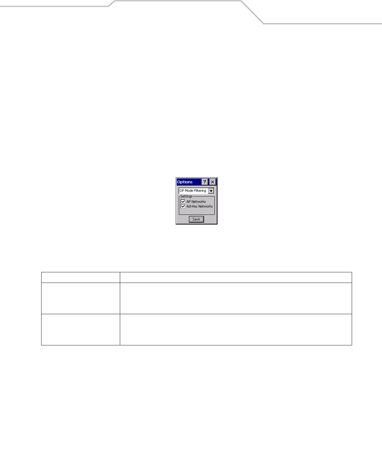 Operating Mode Infrastructure: Select Infrastructure to enable the mobile computer to transmit and receive data with an AP. Infrastructure is the
