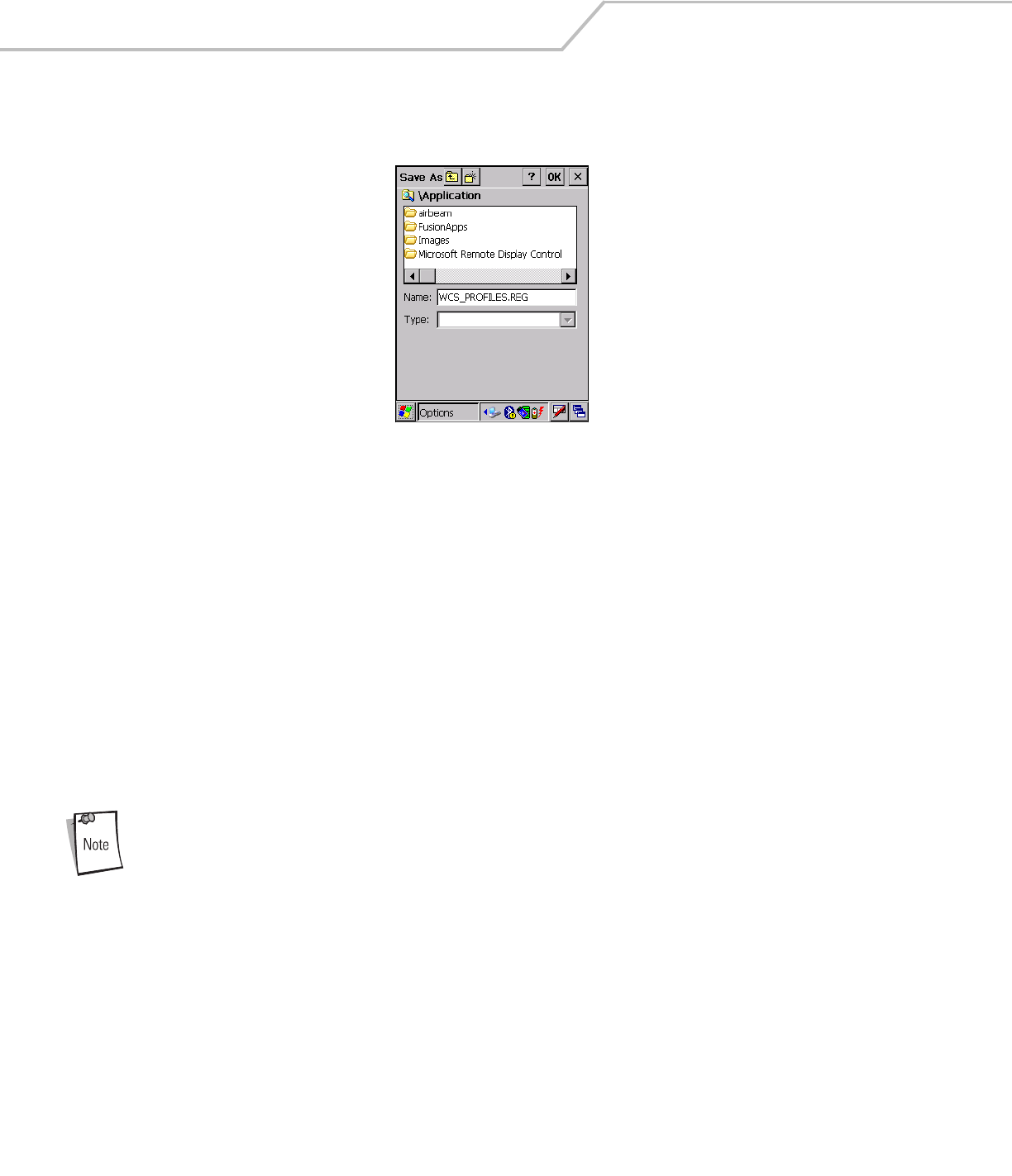 and has a default file name to use. For exporting all profiles, the default filename is: WCS_PROFILES.REG. For exporting the options,