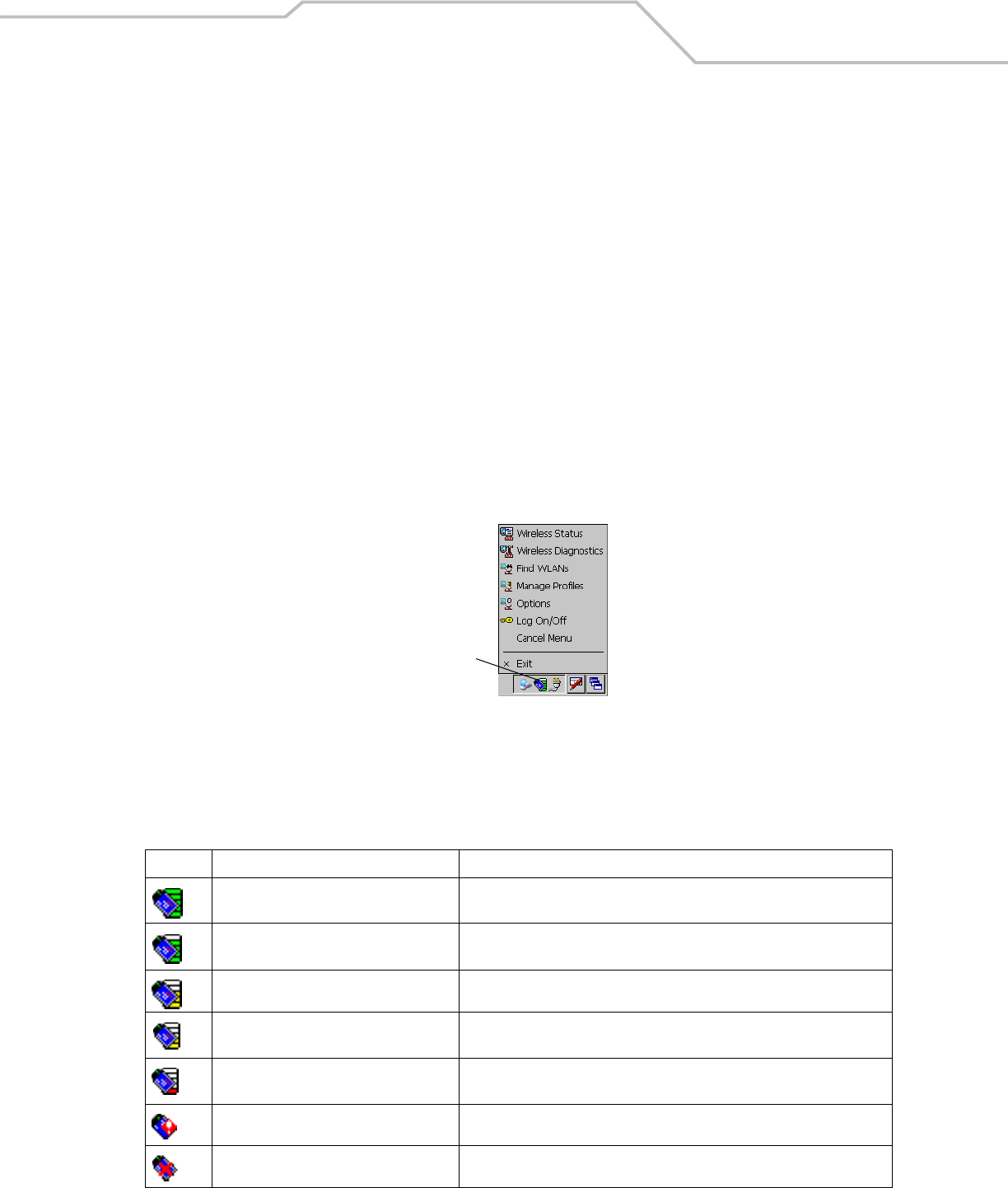 radio embedded the mobile computer. The following wireless applications are available on the task tray from the Wireless Application