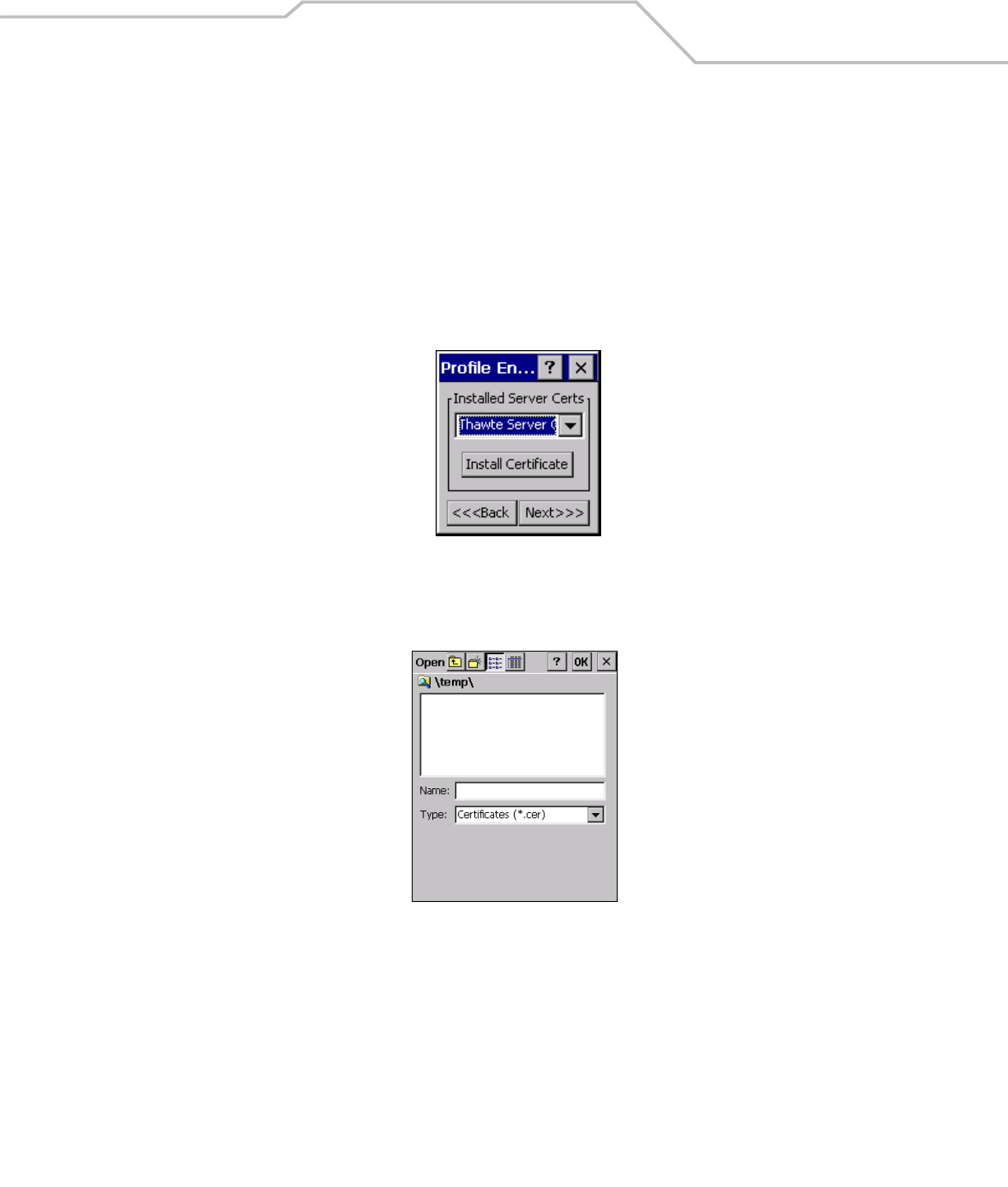 certificate files must be placed in the folder Application\Certs. Saving the certificates to this folder causes the certificates to be