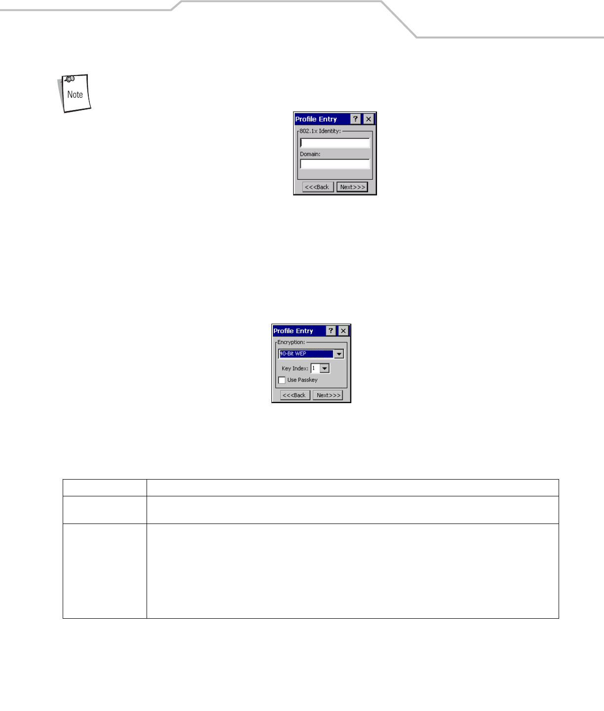 populated with the current settings for that profile. If creating a new profile, the known information for that WLAN network are