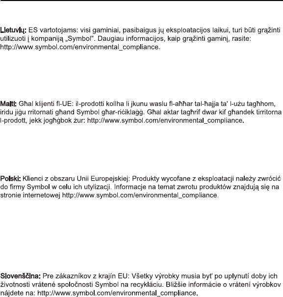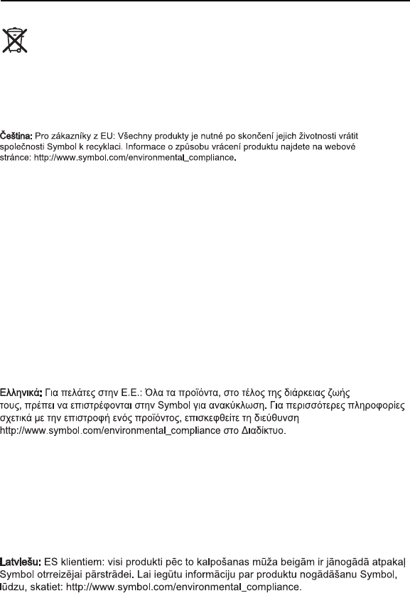 kohta külastage palun aadressi: http://www.symbol.com/environmental_compliance.