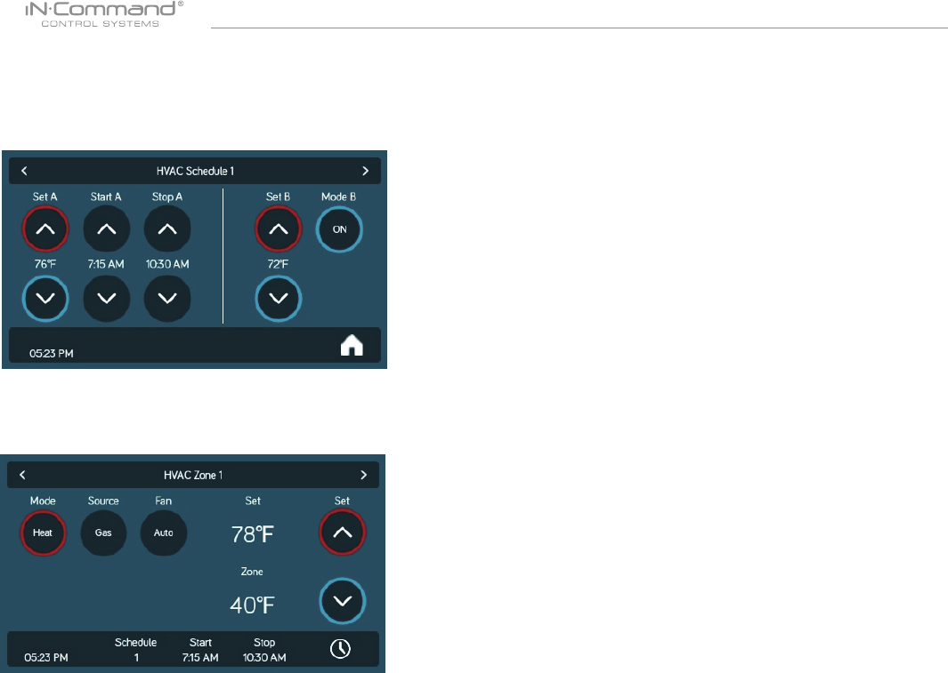 4. Choose schedule 1 or 2 on HVAC zone Home Page.