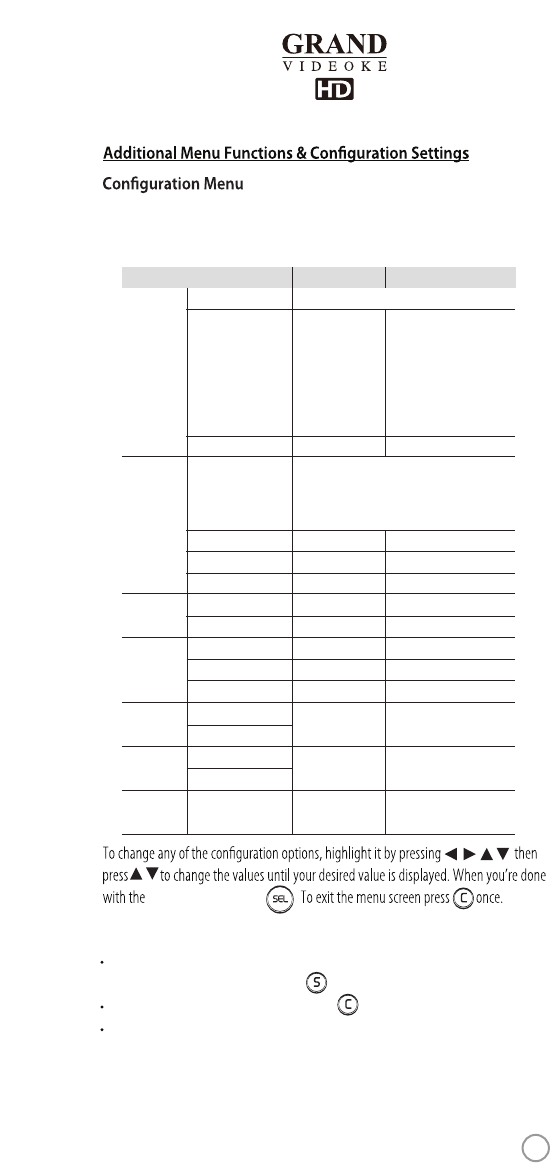 - Conguration Menu