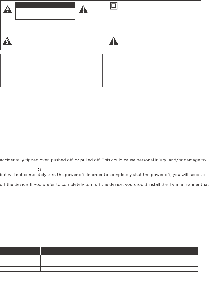 Caution: To reduce the risk of electric shock, do not remove cover (or back). No user serviceable