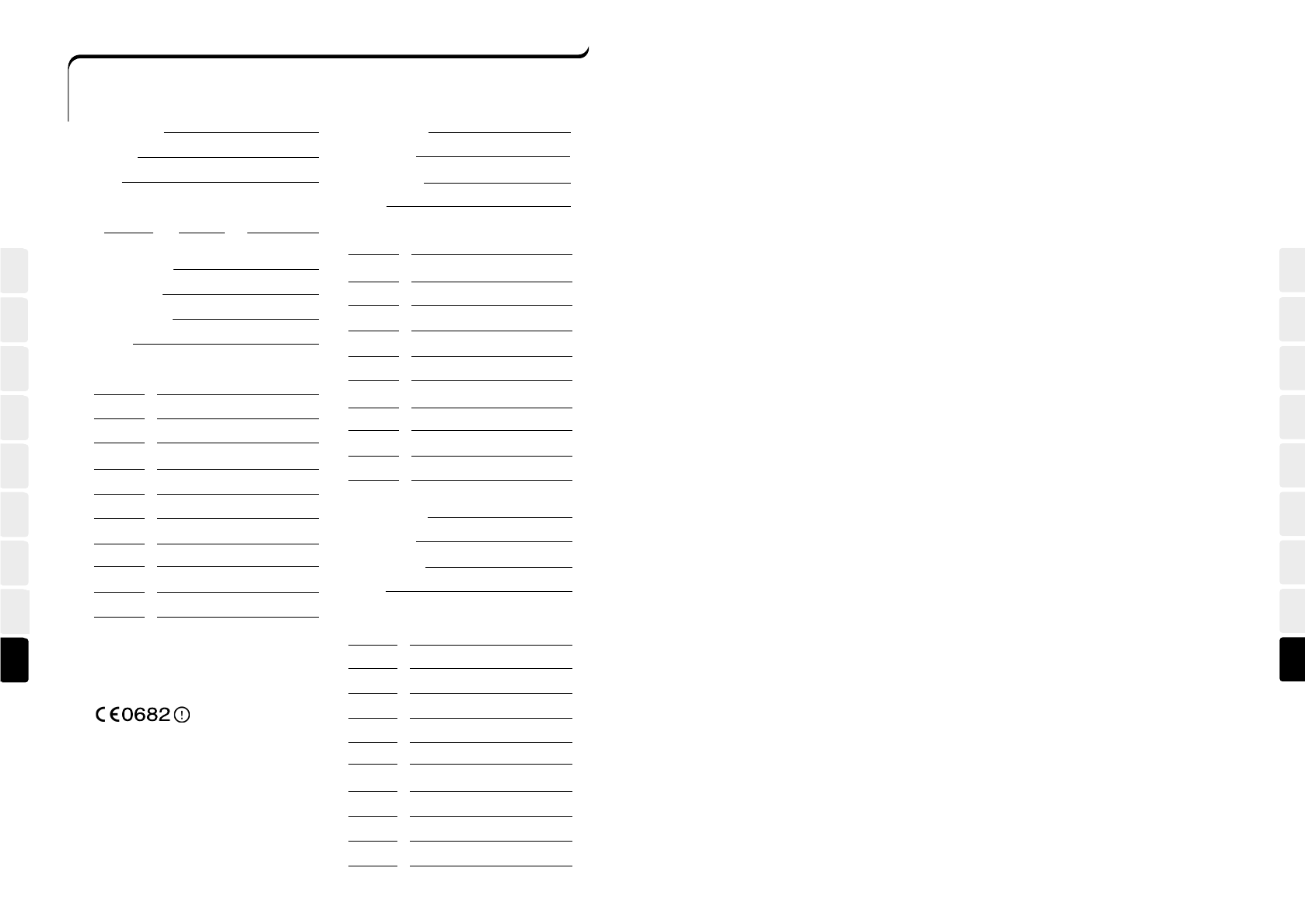 The following information shall be documented. Copy the form and enclose it when service is required.