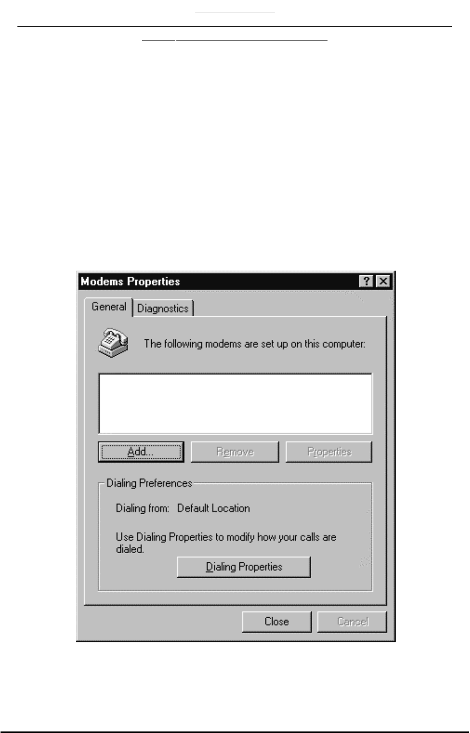 Panel window appears double click the MODEMS icon button. The modem properties window