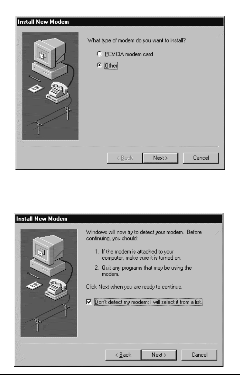4. The Install New Modem window may appear asking for the type of modem to install. Select