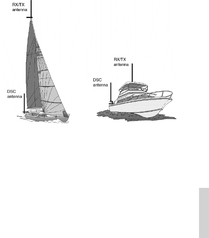 antenna of e.g. 1.2m length should be installed no closer than 1.2m to any other superstruc-
