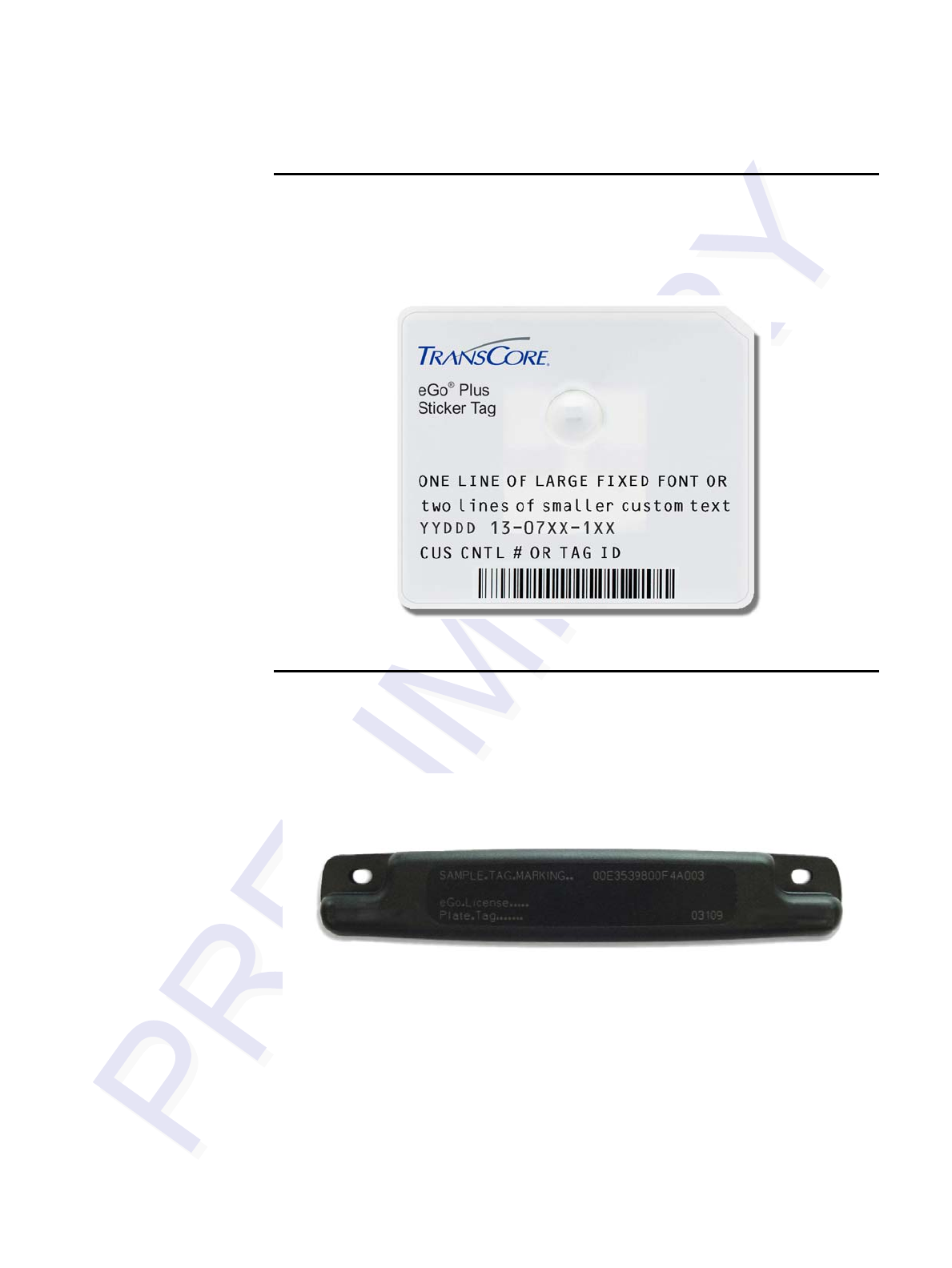 Tags are programmed at the TransCore factory with the tag model number, date of