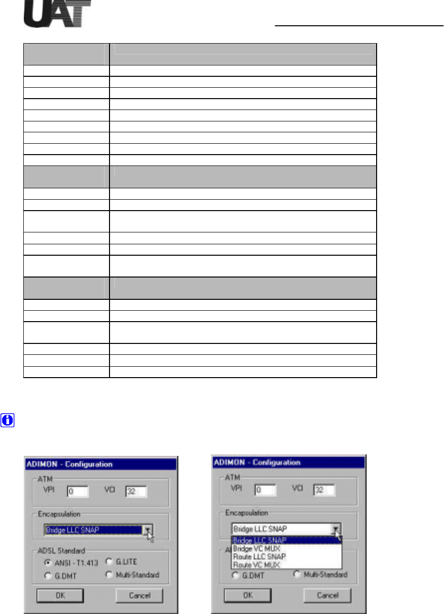 Encapsulation For the NDIS driver, choices include Bridge LLC SNAP, Bridge VC