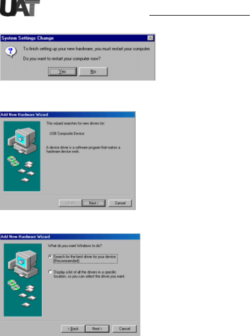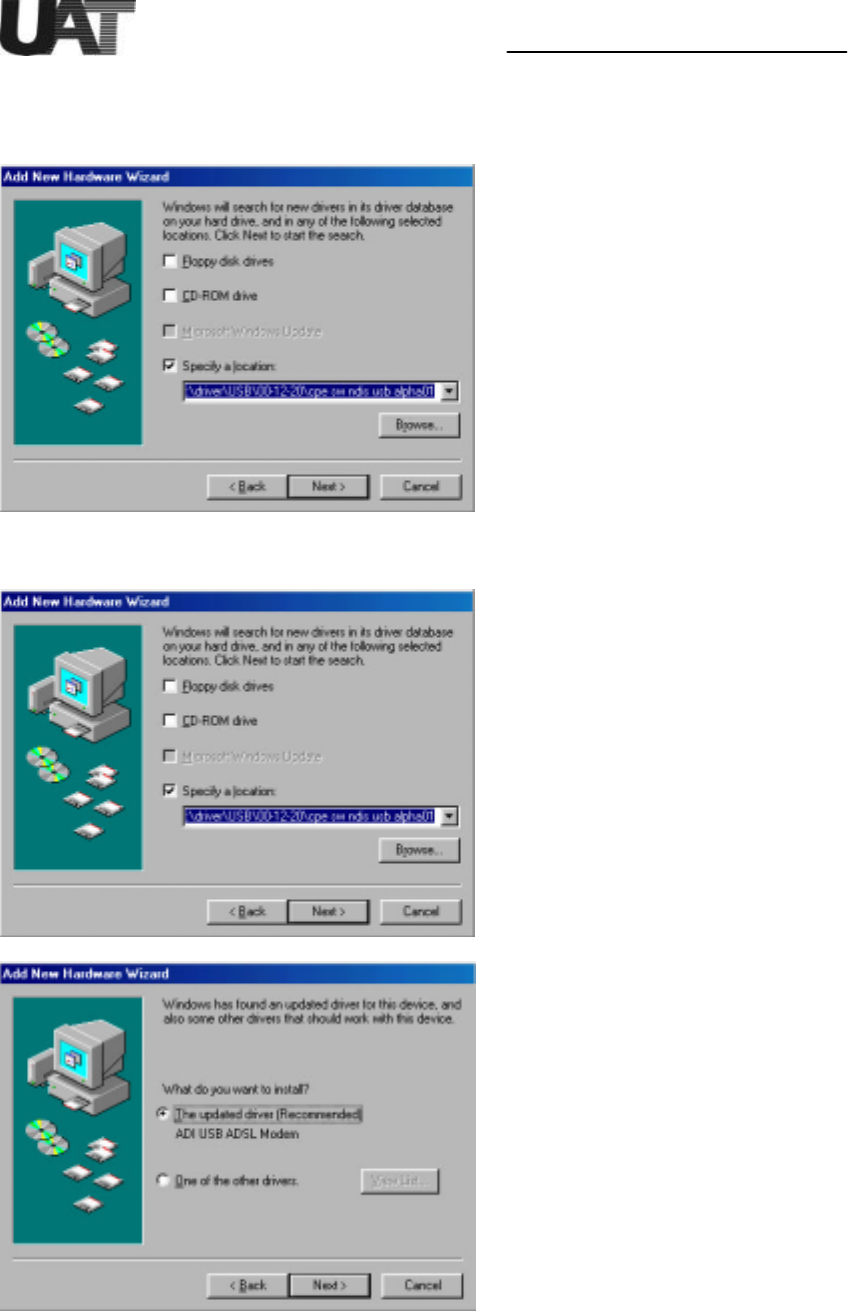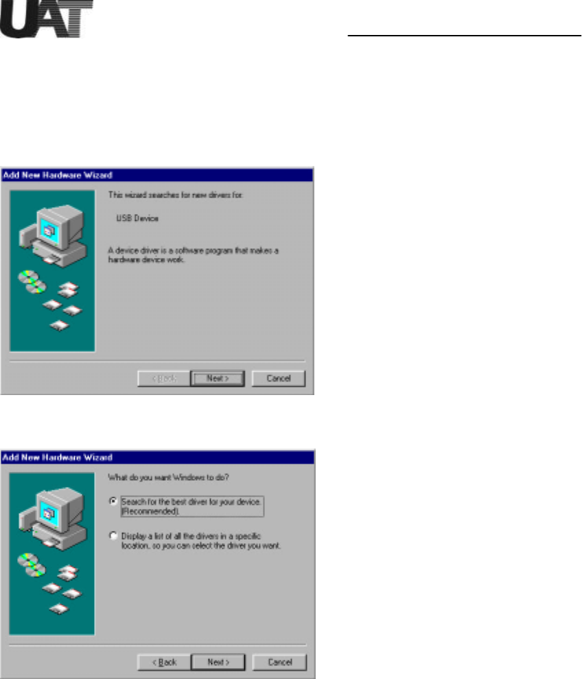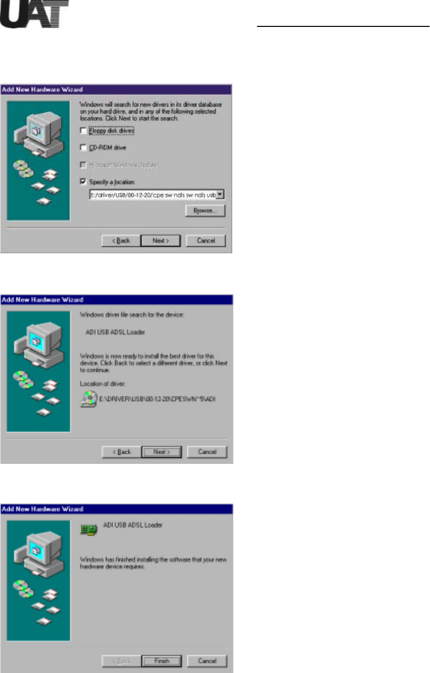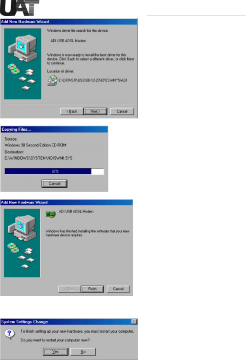 “ADIUSBAE.INF” for Windows 98 to install the USB device driver. Click on “Next” to
